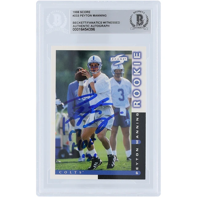 Peyton Manning Indianapolis Colts Autographed 1998 Score #233 Beckett Fanatics Witnessed Authenticated Rookie Card with "HOF '21" Inscription