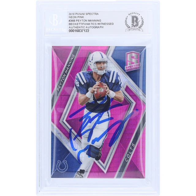 Peyton Manning Indianapolis Colts Autographed 2018 Panini Spectra Neon Pink #38 #6/20 Beckett Fanatics Witnessed Authenticated Card