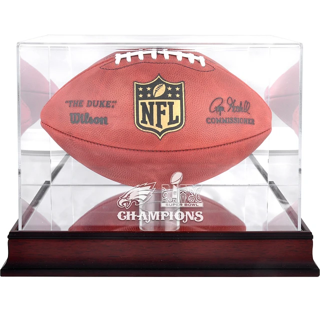 Philadelphia Eagles Super Bowl LIX Champions Mahogany Football Logo Display Case