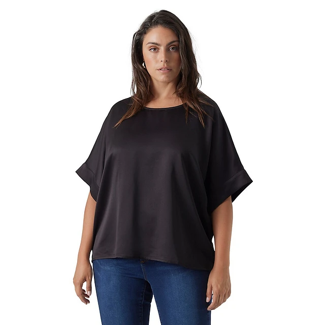 Plus Merle O-Neck Cuffed-Sleeve Top