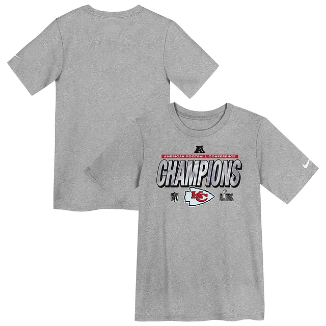 Preschool Nike Heather Gray Kansas City Chiefs 2024 AFC Champions Locker Room Trophy Collection T-Shirt