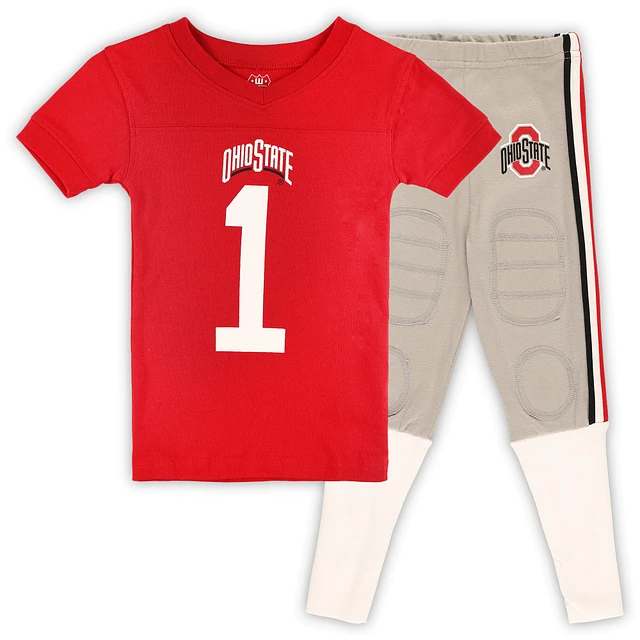 Preschool Wes & Willy Scarlet Ohio State Buckeyes Football Player V-Neck T-Shirt and Pants Sleep Set