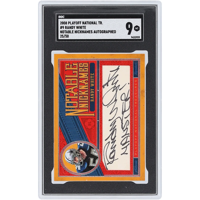 Randy White Dallas Cowboys Autographed 2008 Playoff National Treasures Notable Nicknames #9 #25/50 SGC Authenticated 9 Card with "Manster!" InscriptionRandy White Dallas Cowboys Autographed 2008 Playoff National Treasures Notable Nicknames #9 #25/50 SGC Authenticated 9 Card with "Manster!" InscriptionRandy White Dallas Cowboys Autographed 2008 Playoff National Treasures Notable Nicknames #9 #25/50 SGC Authenticated 9 Card with "Manster!" Inscription