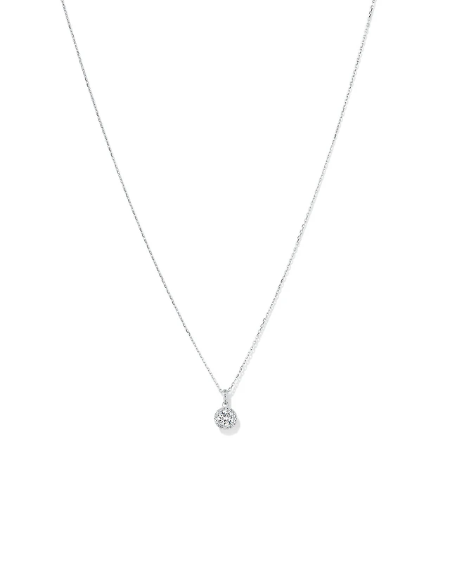 Round Brilliant Cubic Zirconia Halo Pendant Necklace in Sterling Silver