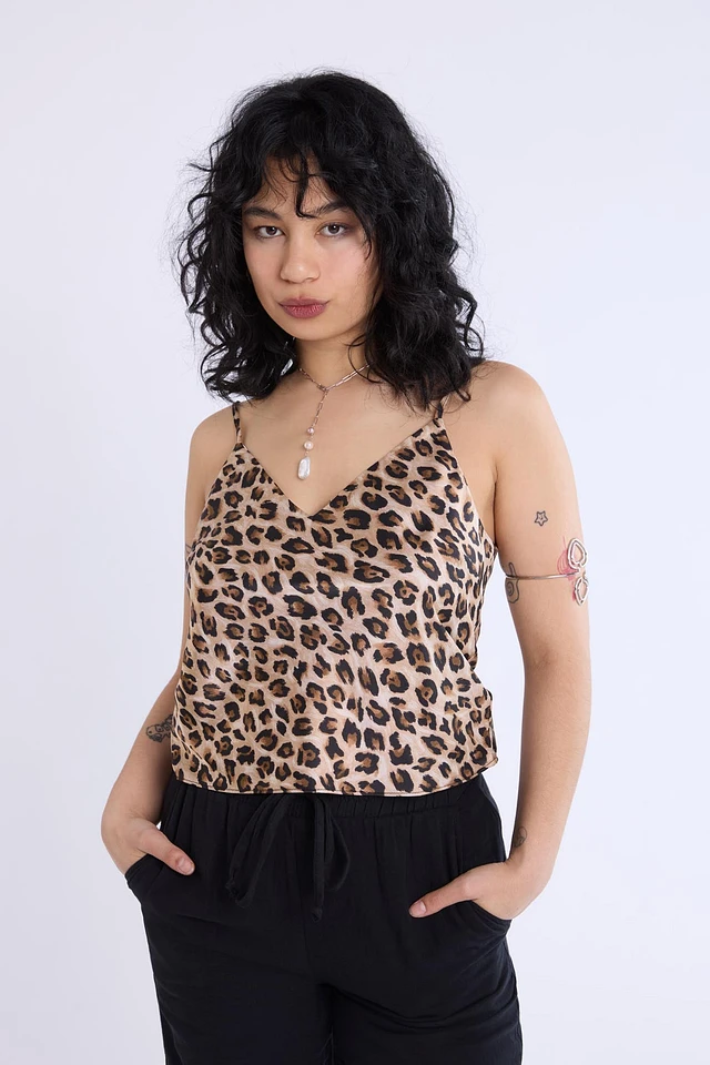 Satin Leopard Print V-Neck Cami - /