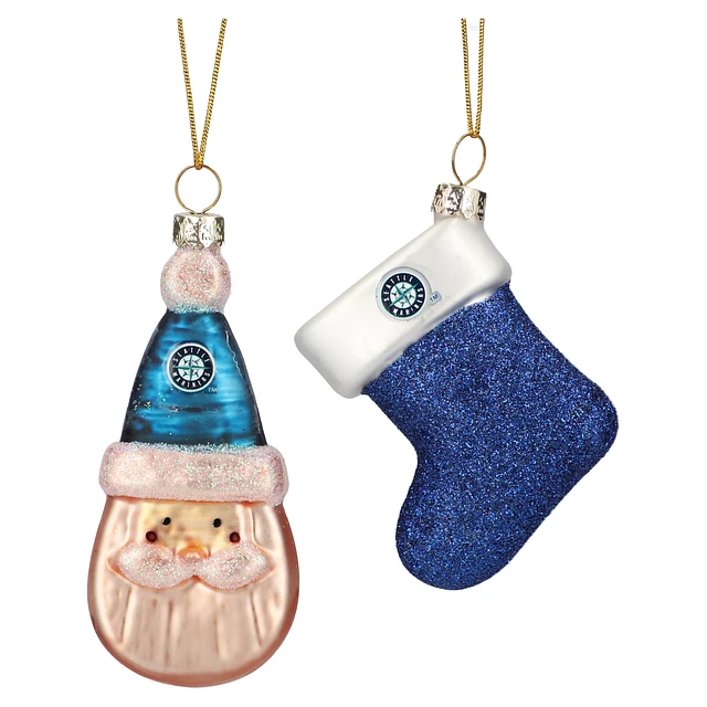 Seattle Mariners Two-Pack Santa & Stocking Blown Glass Ornament Set
