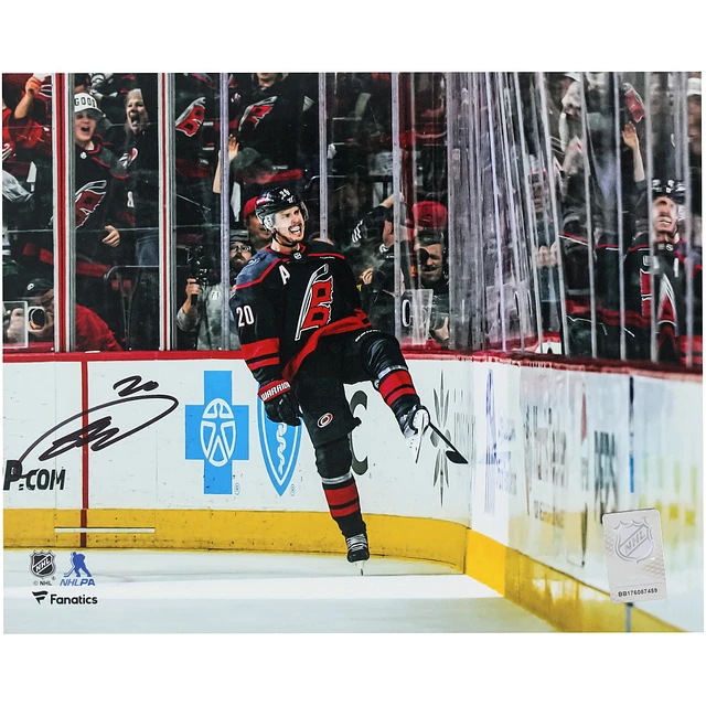Sebastian Aho Carolina Hurricanes Autographed 8" x 10" Black Jersey Celebration Photograph