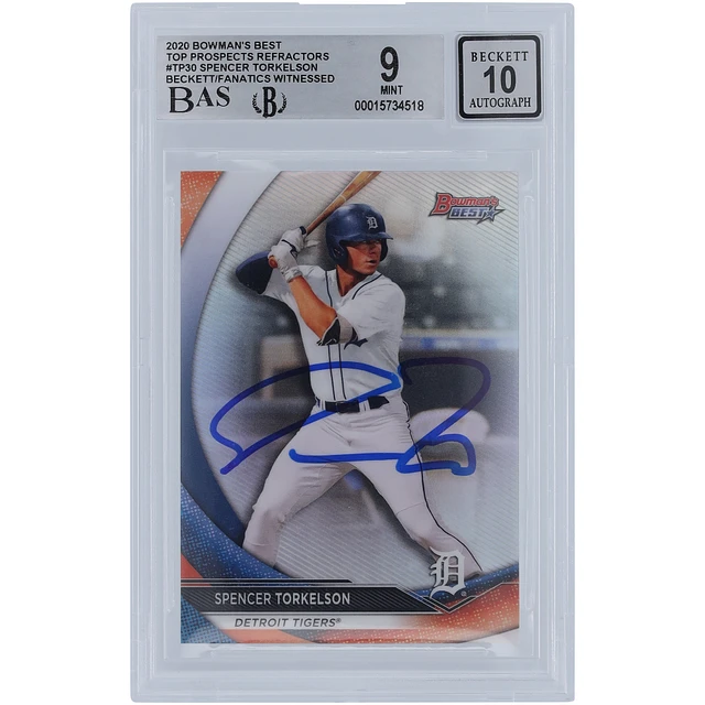 Spencer Torkelson Detroit Tigers Autographed 2020 Bowman's Best Top Prospects Refractor #TP30 Beckett Fanatics Witnessed Authenticated 9/10 Rookie Card