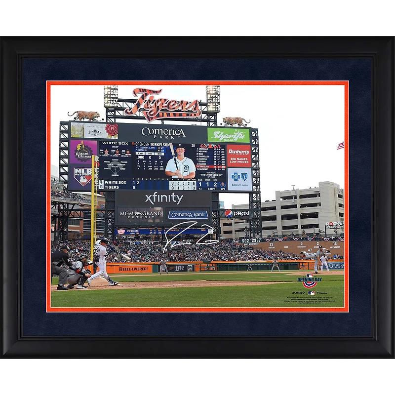 Display in your home or office an exciting Detroit Tigers moment forever preserved with this Framed 16" x 20" First At Bat Photograph autographed by Spencer Torkelson. As a conversation starter, it gives you a chance to relive that point in time and share your passion for the Detroit Tigers.