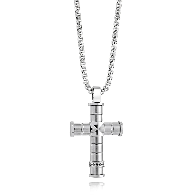Elevate your style and faith with the Stainless Steel 22" Cubic Zirconia Accents Cross necklace. Crafted in resilient stainless steel and adorned with shimmering cubic zirconia accents, this cross pendant is a stunning testament to both elegance and spirituality. At 22 inches, it combines strength and grace, making a sophisticated statement of faith and fashion.