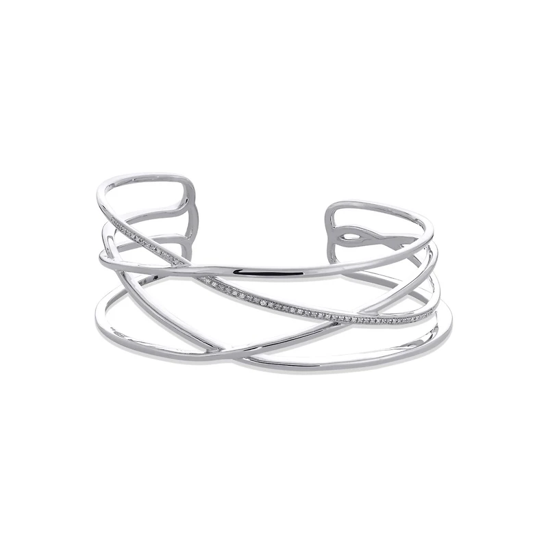 Artfully sculpted from sterling silver this open cuff bracelet is designed to delight. Featuring 0.05ctw of ravishing round diamonds, she's sure to reach for this everyday.