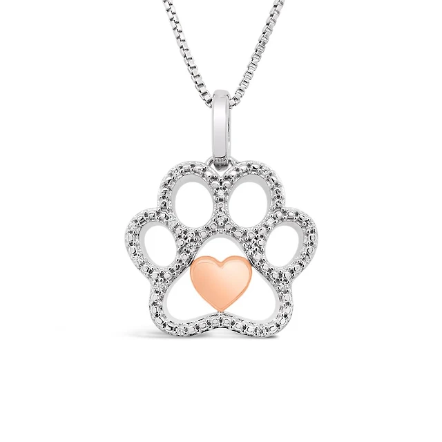Sterling Silver & 10K Rose Gold 0.03CTW Paw with Heart Pendant