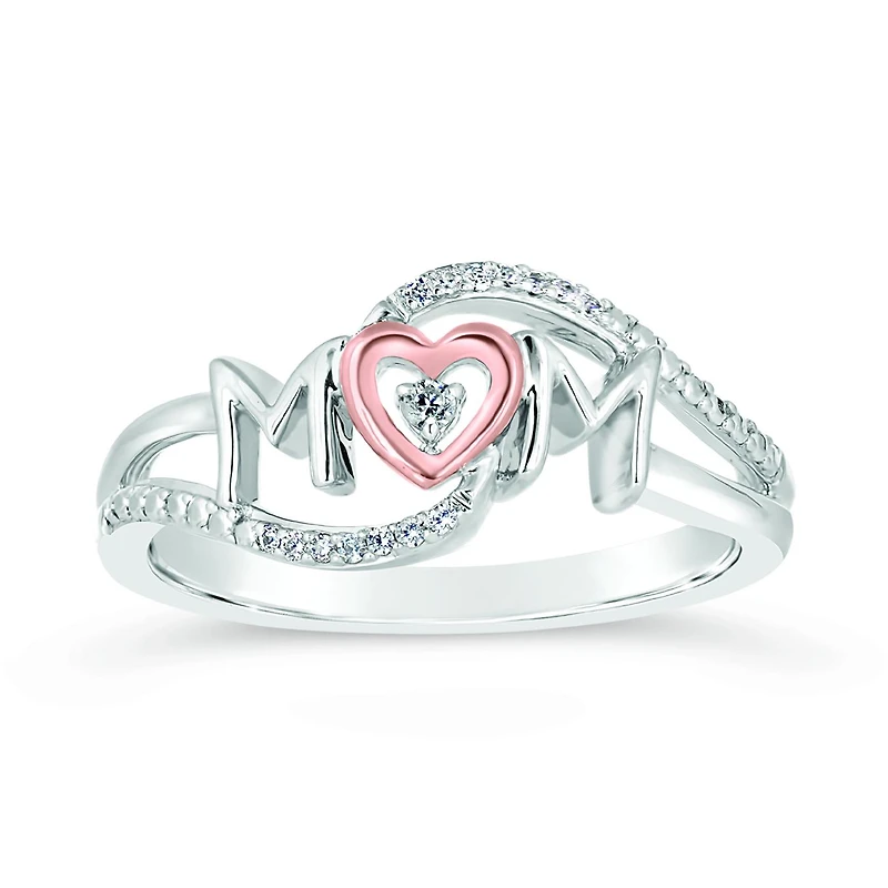 The Sterling Silver & 10K Rose Gold 0.04CTW Diamond Mom Ring is a heartfelt tribute to the selfless love and devotion of mothers everywhere. It serves as a constant reminder of the special connection and appreciation shared with your own mother or as a loving gift to celebrate a new mother's journey. This ring is not only a beautiful piece of jewellery but also a meaningful expression of love and gratitude. It is a perfect choice to honor and celebrate the extraordinary role of a mother in your life.