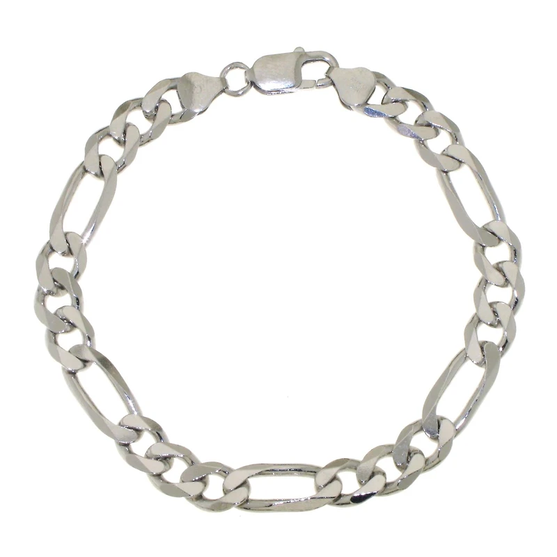The Sterling Silver 20" 8.2mm Figaro Chain is a bold and substantial accessory crafted from sterling silver. Featuring an 8.2mm width and a length of 20 inches, this Figaro chain makes a statement with its robust design, ideal for individuals seeking a more prominent and eye-catching style in their jewellery.