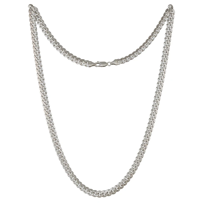 The Sterling Silver 24" 7.2mm Pave Cut Curb Chain is a bold and eye-catching accessory crafted from sterling silver. It features a curb chain design with pave-cut detailing, adding texture and sparkle to the piece. This chain is versatile and makes a statement, ideal for various styles and occasions.