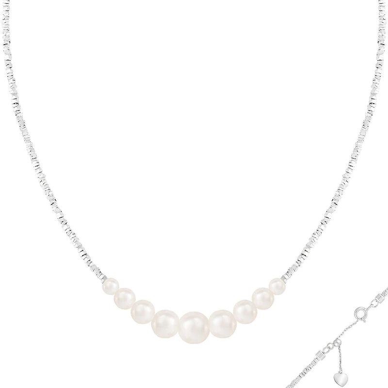 Sterling Silver 4-8mm White Freshwater Pearl Necklace 18" + 1" Extender