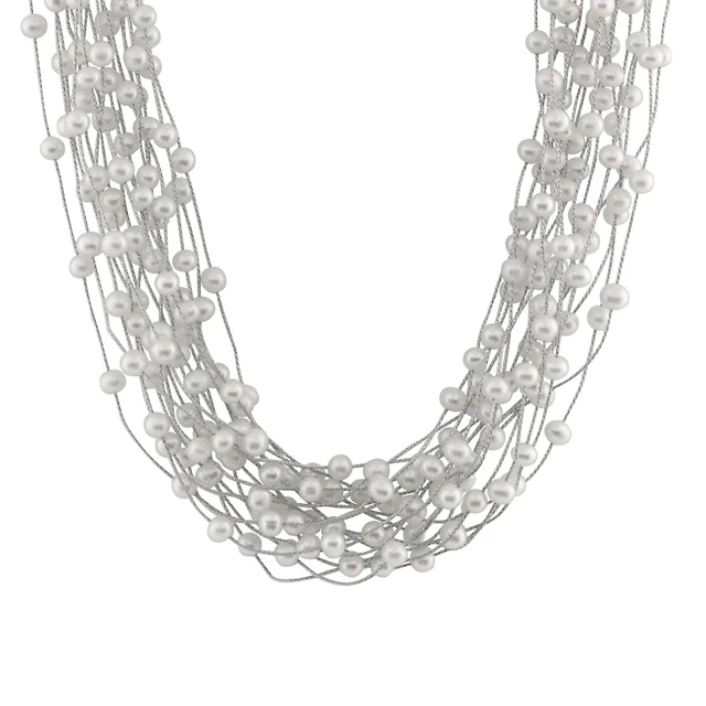 Sterling Silver 5-6mm Multiple Row Cord Freshwater Pearl Bracelet