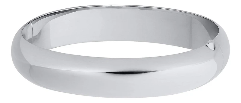 The 12mm width creates a statement look, while the hinged design ensures a comfortable fit and easy wear. Crafted from high-quality sterling silver, the bangle has a sleek, polished finish that complements both casual and formal outfits.