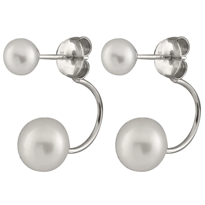 Elevate your elegance with these sterling silver earrings, featuring two beautifully contrasting button-shaped freshwater pearls. The larger 8-8.5mm pearl paired with the 5-5.5mm pearl creates a harmonious balance, offering both dimension and timeless beauty.