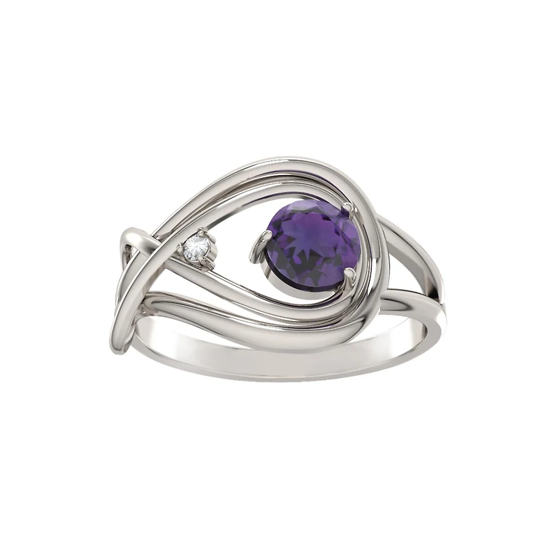 Crafted from sterling silver and adorned with a captivating amethyst gemstone accented by delicate diamonds, this ring exudes elegance and charm. Its combination of vibrant colour and sparkling accents makes it a stunning accessory that adds sophistication to any look.