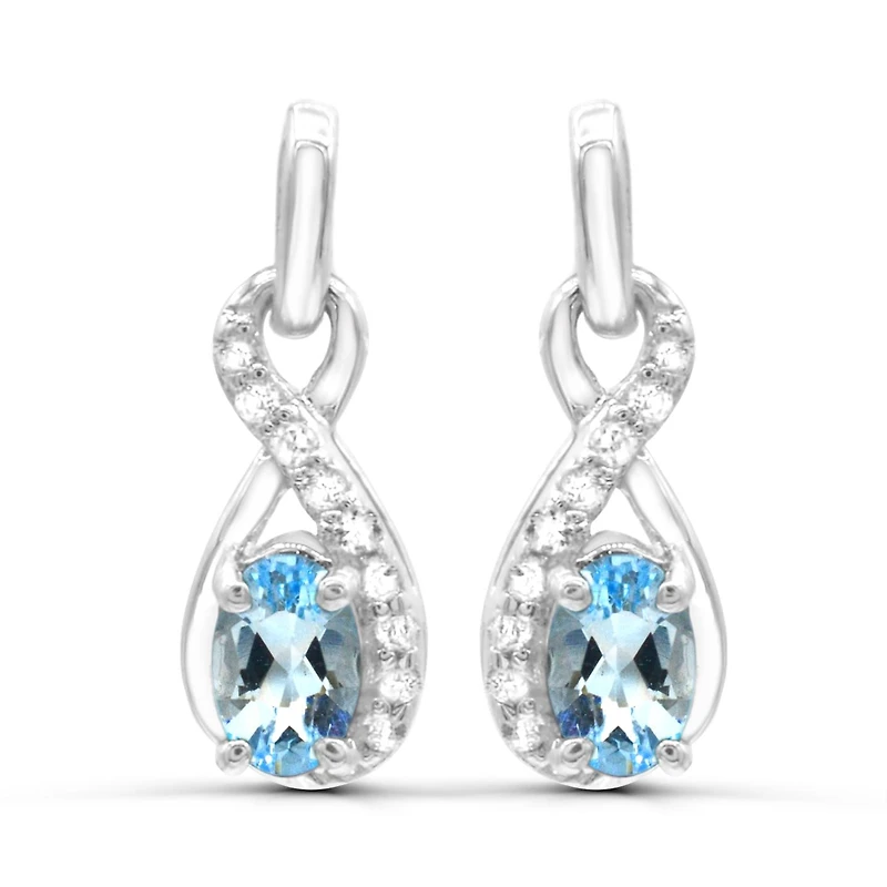These modern yet classic, infinity design earrings are crafted in gleaming sterling silver and are sure to become a favourite item in your jewellery collection. This item is perfectly adorned with shimmering white topaz and two oval cut aquamarine, which is the birthstone for March. If you are looking for something stunning, order this for yourself or someone you love today!