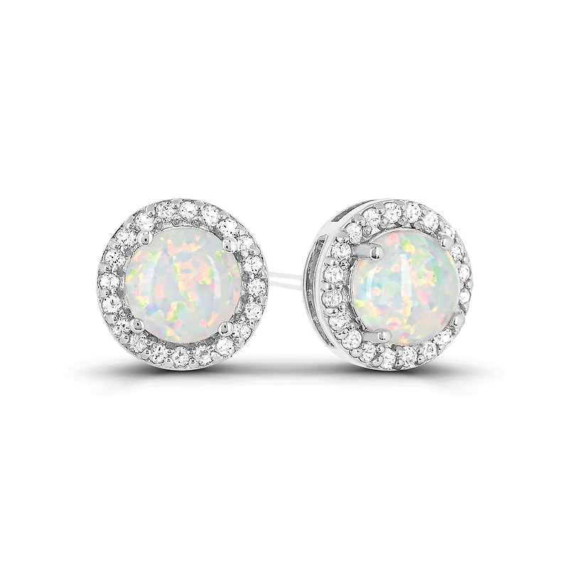 Sterling Silver Created Opal and Created White Sapphire Halo Earrings