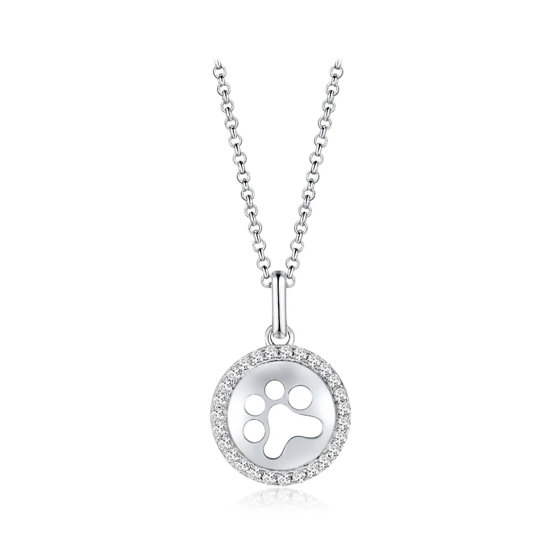 Sterling Silver Cubic Zirconia 19" Paw Print Pendant