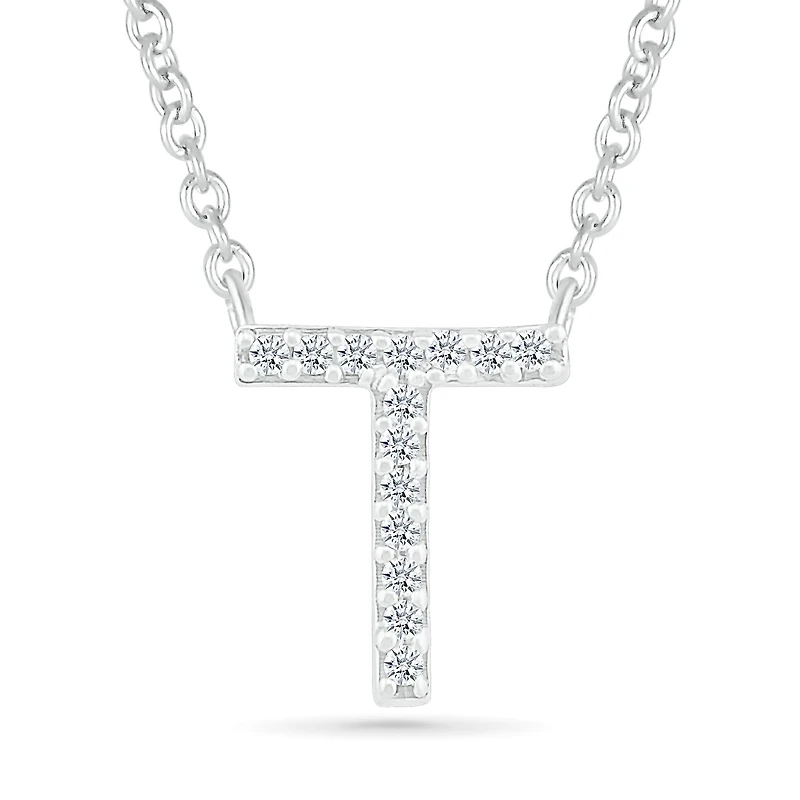 Sterling Silver & Diamond "T" Initial Necklace