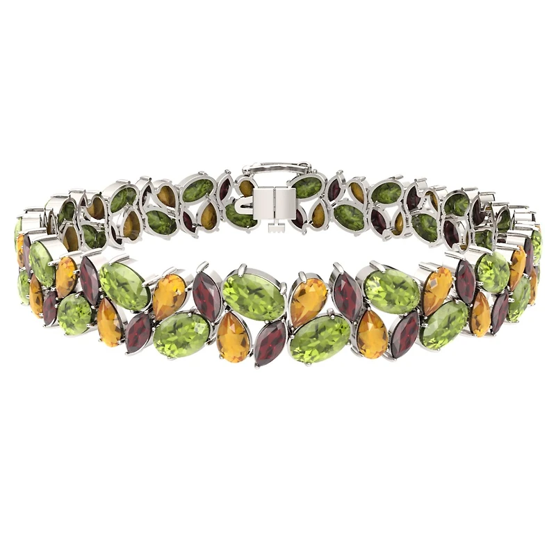 Sterling Silver Peridot, Citrine & Garnet Bracelet