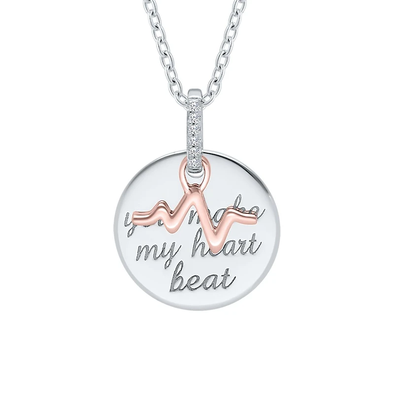 "You make my heart beat" Express your love with this sterling silver and 10kt rose gold diamond heartbeat pendant. Bella Moda- Beauty is always in fashion.