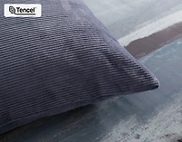 Solid corduroy design in deep grey Soft woven 100% cotton fabric Machine washable & dryable Add a touch of soft texture with our Stormy Square Cushion Cover Featuring a solid corduroy design in deep grey, our cushion cover is woven from classically cozy 100% cotton fabric for easy comfort Style up your space with our Stormy Square Cushion Cover on its own, or pair it with the rest of the Stormy collection for a complete look Details: Duvet cover and pillow shams feature a solid painted grey reverse, and are finished with a subtle grey piping Euro Shams feature a solid grey textured jacquard surface in a TENCEL™ Lyocell and Cotton blend Square Cushion Cover has a textured corduroy surface, woven from 100% cotton Duvet cover includes 8 corner and side anchor ties that attach to duvet to keep in place and prevent shifting (twin sizes have six ties) All items have YKK zipper closures Coordinating items sold separately NOTE: Photography for reference only Colours may vary in-person based on your unique lighting FABRICATION: 100% Cotton OEKO-TEX® Certified This product has been verified in an independent laboratory and tested for harmful substances according to STANDARD 100 by OEKO-TEX® Certification number: VC025 212896 TESTEX ITEMS AVAILABLE (IN STORES & ONLINE): All coordinating items are sold separately 18" W x 18" L SKU: HR25SMSQCO WASHING INSTRUCTIONS Machine wash cold on gentle cycle with zippers closed Use a gentle detergent Tumble dry on a gentle setting with low or no heat and remove promptly at cycle end Add QE Home Wool Dryer Balls to reduce wrinkles and increases drying efficiency Touch up with a medium heat iron or steamer as needed Do not use bleach or fabric softener Do not dry clean. QE Home Stormy Square Cushion Cover, Grey
