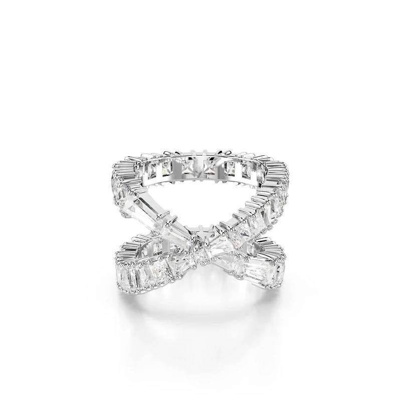 Turn heads with the Swarovski Hyperbola Ring, featuring a bold, intertwined crystal design that catches the light, offering a modern and sophisticated touch to any ensemble.