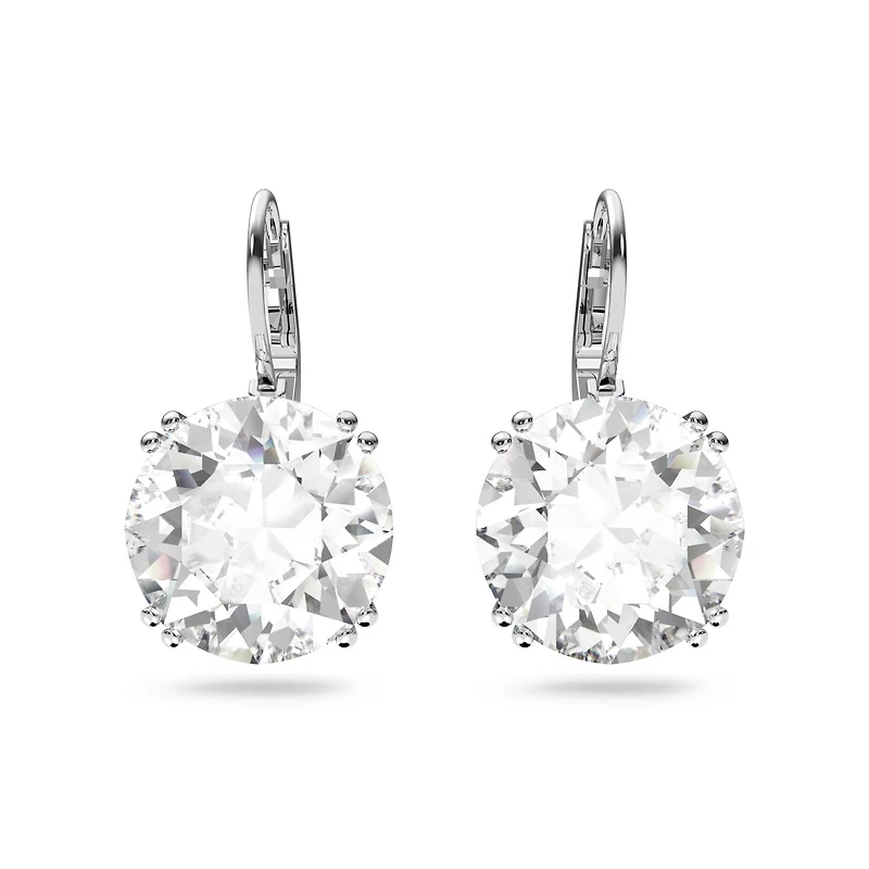 These elegant earrings will make a timeless addition to your everyday repertoire. Featuring round cut crystals in dazzling white, this pair is finished with a sleek rhodium plated setting. Style yours with denim, eveningwear, or sharp tailoring – with this versatile design, anything goes. These earrings are part of the Millenia Family, designed for Collection III. Style 5628351