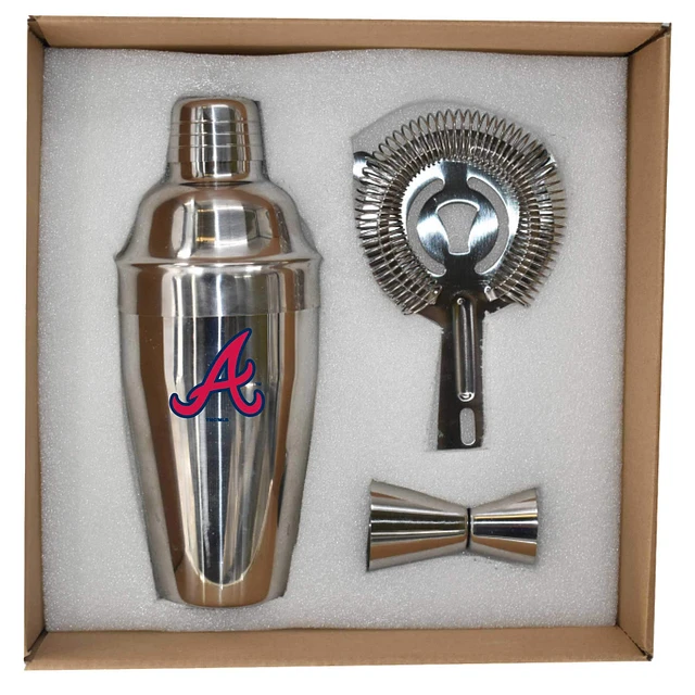 The Memory Company Atlanta Braves Stainless Steel Shaker, Strainer & Jigger Set