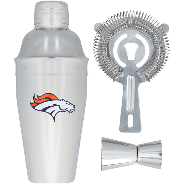 The Memory Company Denver Broncos Stainless Steel Shaker, Strainer & Jigger Set