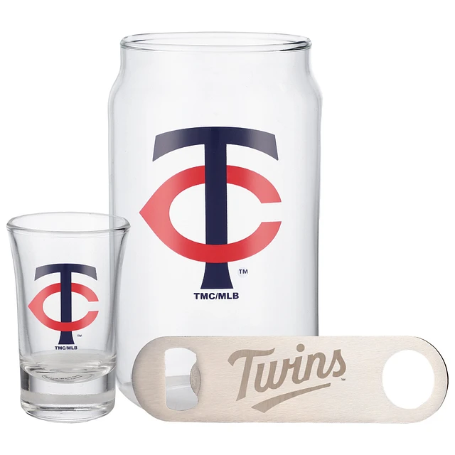 The Memory Company Minnesota Twins Three-Pack Beer Glass, 2oz. Shot Glass & Bottle Opener Set
