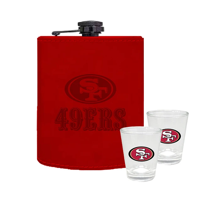 The Memory Company San Francisco 49ers Three-Pack 8oz. Leather Flask & 2oz. Shot Glass Set