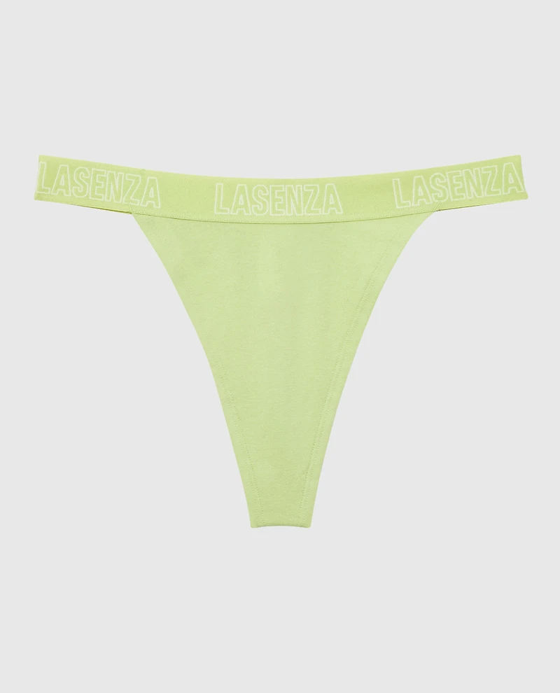 Get the smooth and comfortable feeling you love in this thong panty. Finished with a trendy logo waistband this allover cotton panty is a customer favorite. Imported cotton, elastane.