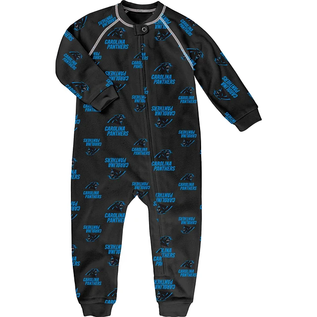 Infant Black Carolina Panthers Allover Print Raglan Full-Zip Sleeper