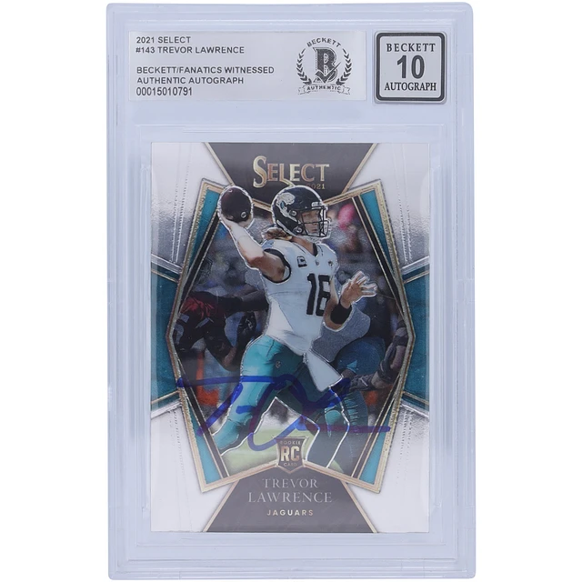 Trevor Lawrence Jacksonville Jaguars Autographed 2021 Panini Select Premier Level #143 Beckett Fanatics Witnessed Authenticated 10 Rookie Card