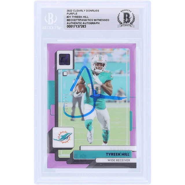 Tyreek Hill Miami Dolphins Autographed 2022 Panini Clearly Donruss Purple #31 #/175 Beckett Fanatics Witnessed Authenticated Card