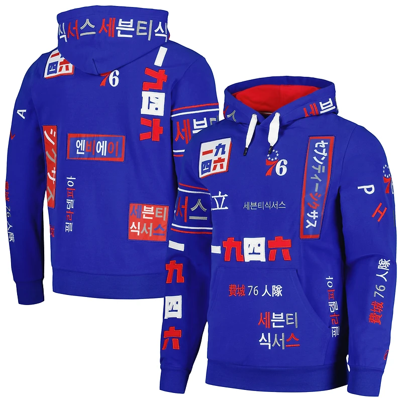 Unisex FISLL Royal Philadelphia 76ers Multi-Language Pullover Hoodie