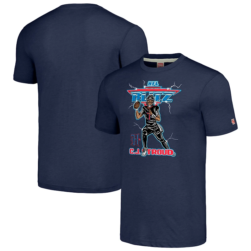 Showcase your Houston Texans pride and celebrate their newest star with this C.J. Stroud NFL Blitz Player Tri-Blend T-Shirt from Homage. This tri-blend tee features a unique heathered design, offering a stylish and comfortable option for everyday wear. The screen print graphics boldly display a dynamic image of C.J. Stroud, making it clear you're ready to see him blitz the competition this season.
