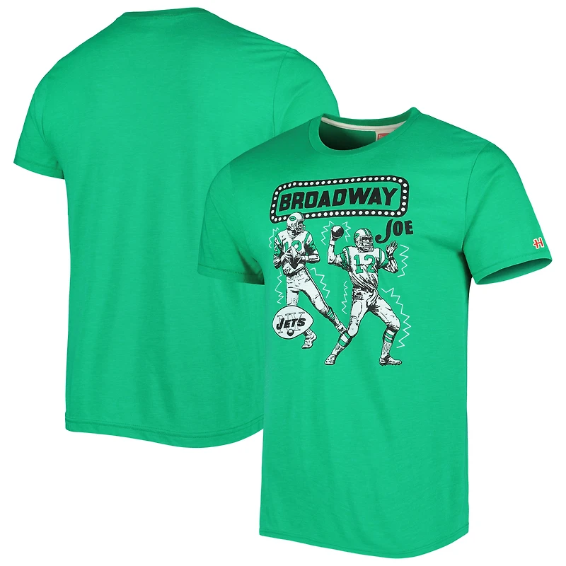Unisex Homage Joe Namath Heather Green New York Jets Caricature Retired Player Tri-Blend T-Shirt