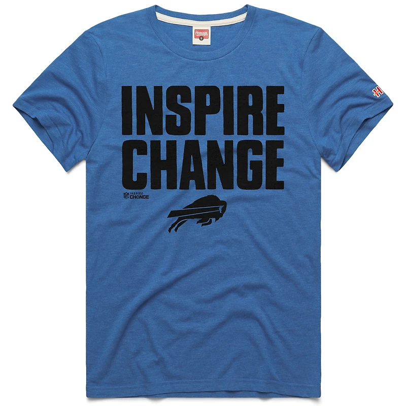 Support the change you want to see in the world. This Homage Buffalo Bills Tri-Blend T-Shirt is part of the NFL's Inspire Change initiative, which aims to create a more equal and just future for everyone. It features a screen printed Buffalo Bills logo with the NFL Inspire Change logo across the front. The NFL does not profit from the sale of Inspire Change products. Charitable contributions are awarded by the NFL Foundation directly to NFL's Inspire Change nonprofit partners. For more information, please visit www.NFL.com/InspireChange.