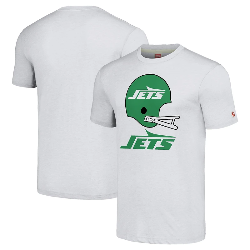 Celebrate your unwavering loyalty to the New York Jets with this Big Helmet Tri-Blend T-Shirt from Homage. This comfortable gear proudly displays the Jets logo, making it the perfect way to represent your favorite NFL team.