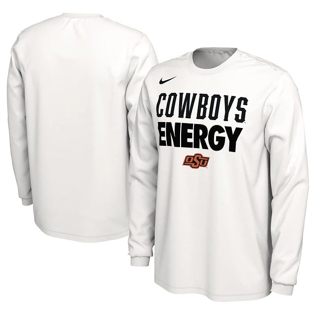 Unisex Nike White Oklahoma State Cowboys 2024 On-Court Bench Energy Long Sleeve T-Shirt