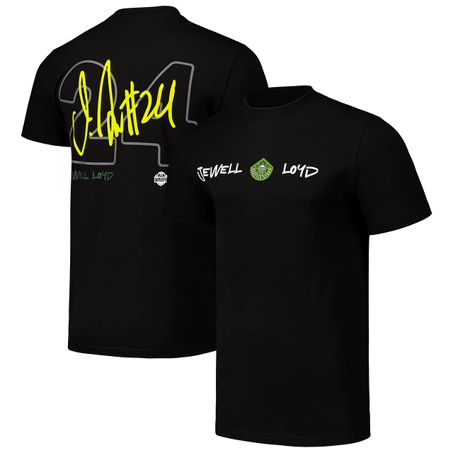 Unisex round21 Jewell Loyd Black Seattle Storm Player Signature Name & Number T-Shirt