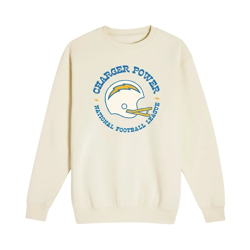 Rep your LA gridiron heroes in supreme comfort with this Charger Power Fleece Sweatshirt from The Wild Collective. The eye-catching screen graphics pop against the cream-colored fleece interior that adds warmth and softness for a midweight feel. The ribbed sleeves and hem ensure a snug fit, making this pullover an essential piece for any Chargers fan. Grab this crew neck sweatshirt today and show your team spirit in style.