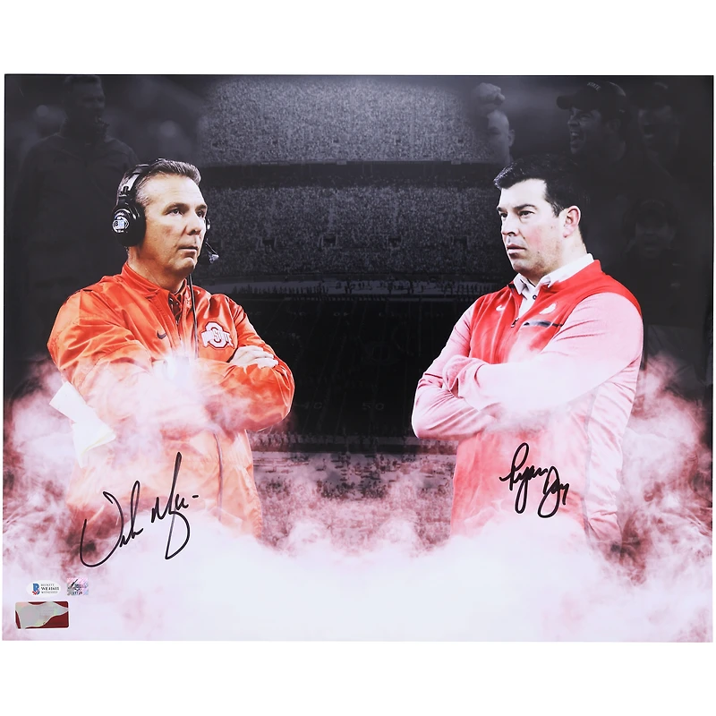 Elevate your collection of Ohio State Buckeyes memorabilia with this Urban Meyer and Ryan Day autographed 16" x 20" Photograph. It features an eye-catching image of the National Championship-winning coaches along with their distinct signatures. Additionally, this collectible photo includes an individually numbered, tamper-evident hologram that can be verified online to certify authenticity.